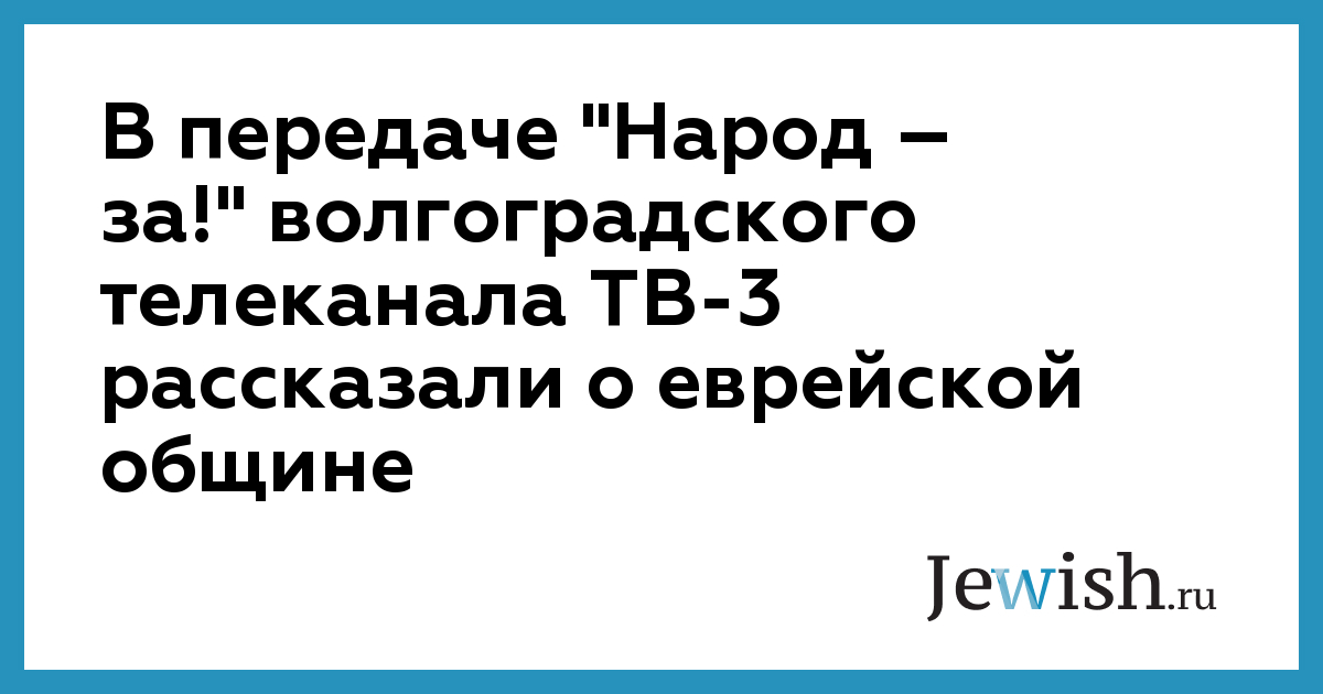 В передаче "Народ – за!" волгоградского телеканала ТВ-3 рассказали о еврейской общине