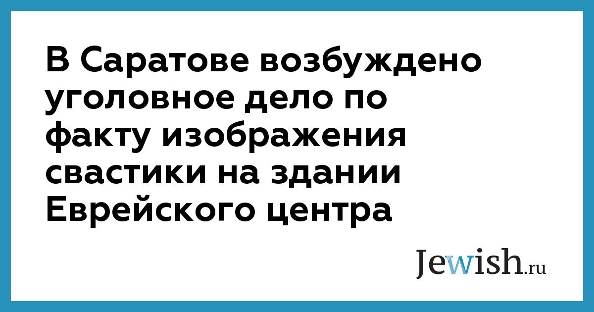 Прокуратурой Кировского района Саратова возбуждено уголовное дело по факту изображения фашисткой свастики на фасаде дома, где располагается офис Еврейского благотворительного центра. Как сообщили в четверг в облпрокуратуре, расследование уголовного дела находится на контроле прокурора Кировского района и прокуратуры области.