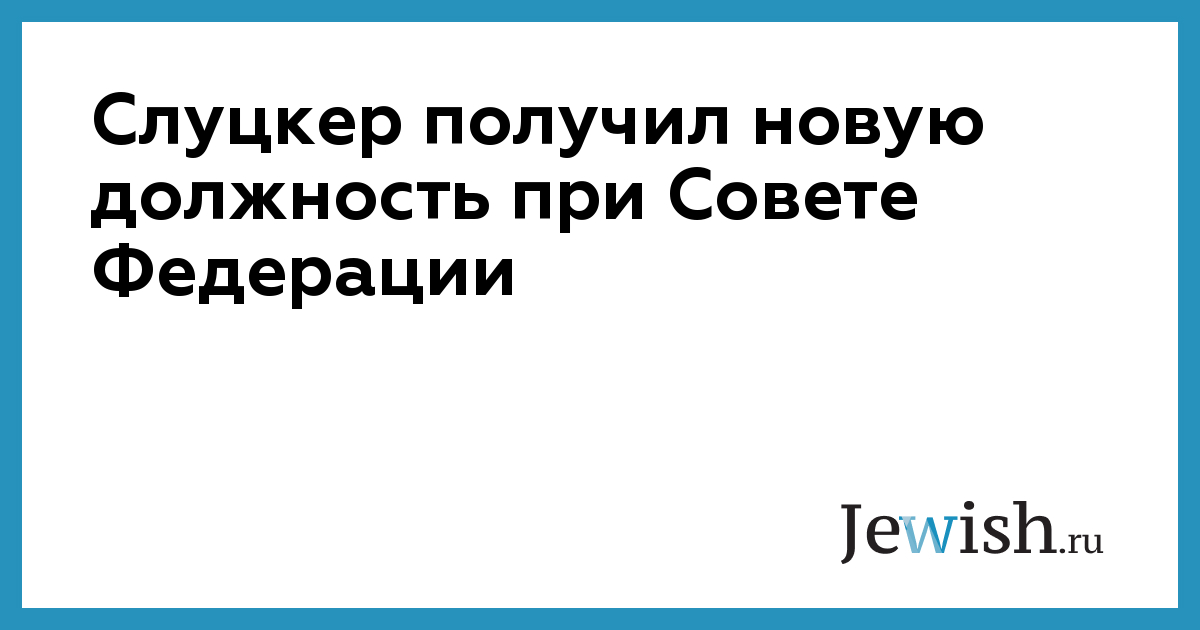 Владимир Слуцкер, член Комитета Совета Федерации по промышленной политике, известный российский меценат и еврейский общественный деятель стал заместителем Объединенной комиссии по национальной политике и взаимоотношениям государства и религиозных объединений. 16 марта в Совете Федерации Федерального Собрания РФ состоялось заседание Совета законодателей, на котором присутствовал президент РФ Владимир Путин.