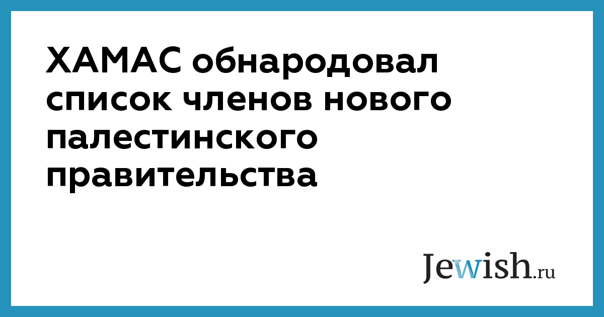 Движение ХАМАС обнародовало список членов нового правительства, официально переданный накануне премьер-министром Исмаилом Ханийе на утверждение председателю Палестинской национальной администрации Махмуду Аббасу.