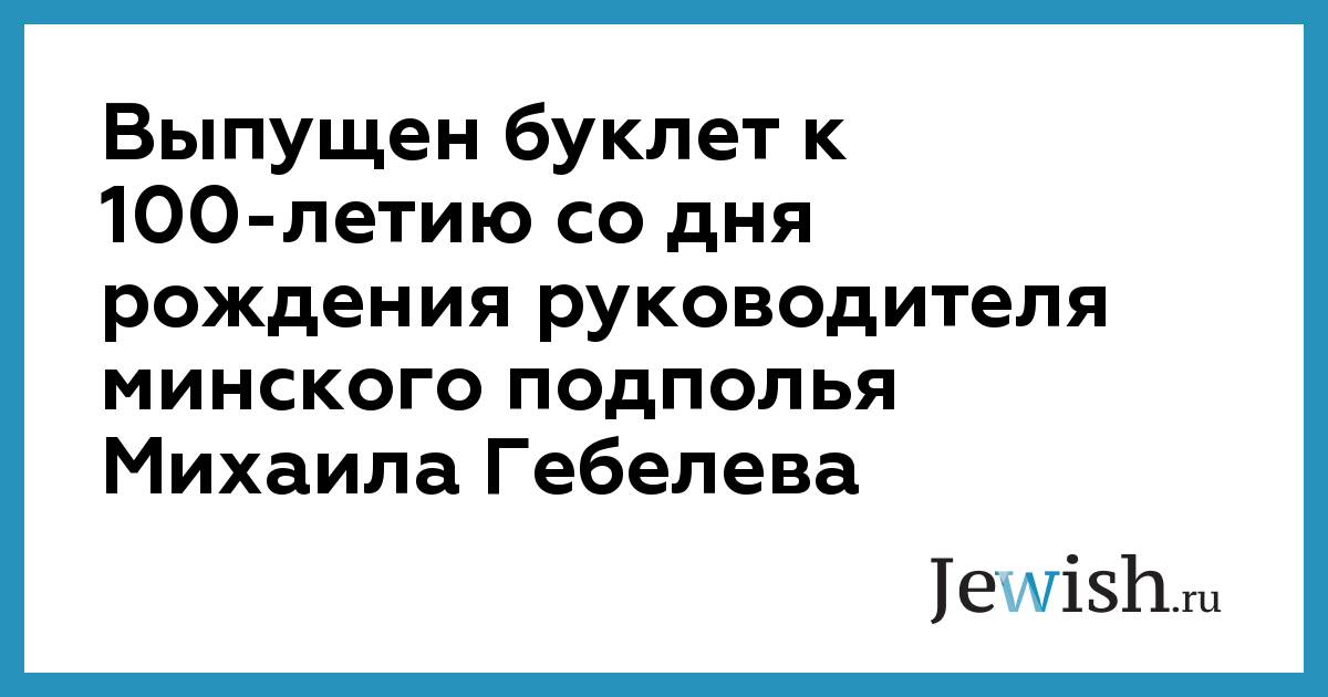Буклет издан Союзом белорусских еврейских общественных объединений и общин, Музеем истории и культуры евреев Беларуси при участии дочери М. Гебелева Светланы, семьи Зепловиц (США) и Американского Еврейского распределительного комитета «Джойнт» в РБ.