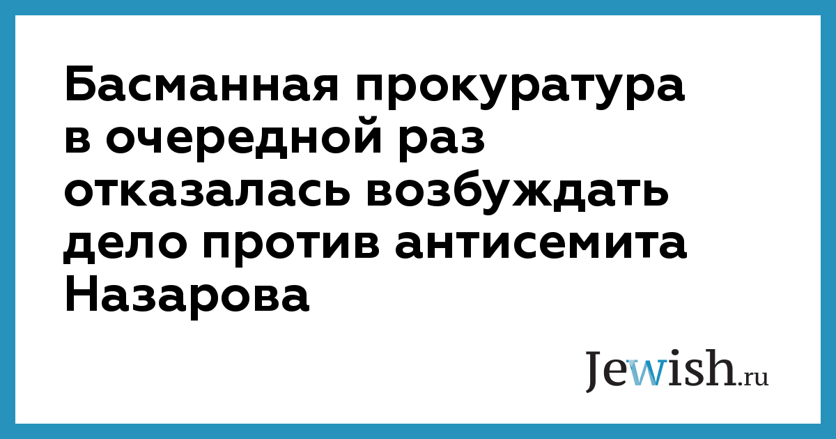 Басманная прокуратура в очередной раз отказалась возбуждать дело против антисемита Назарова