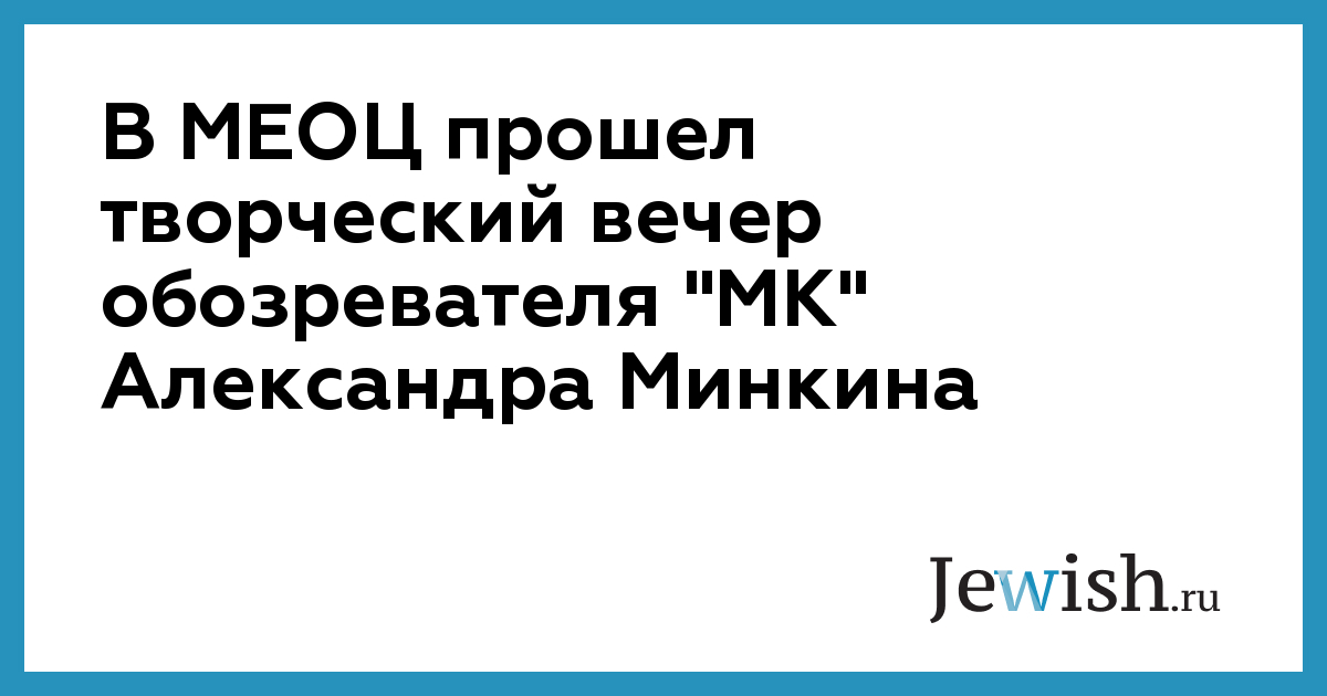 В Амфитеатре Московского Еврейского общинного центра при поддержке Еврейской публичной библиотеки прошел творческий вечер обозревателя газеты «Московский Комсомолец», дважды лауреата премии «Золотое перо России», автора цикла «Письма к президенту» Александра Минкина.