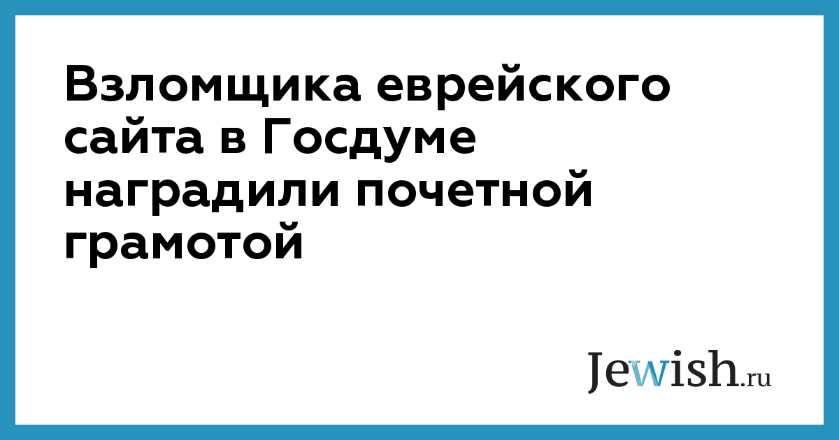 Взломщика еврейского сайта в Госдуме наградили почетной грамотой