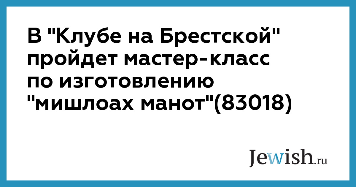 В "Клубе на Брестской" пройдет мастер-класс по изготовлению "мишлоах манот"(83018)