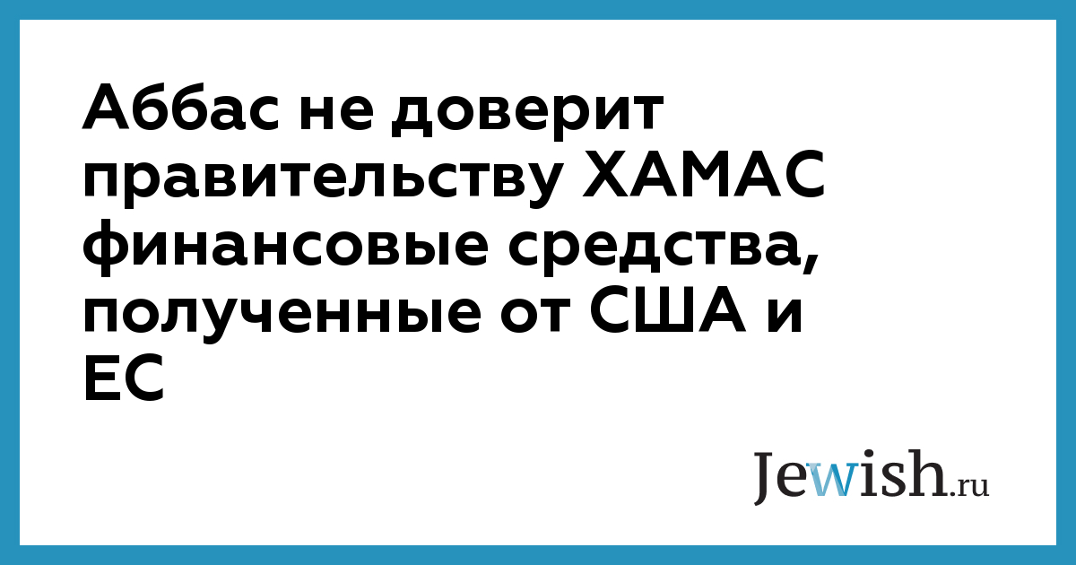 Аббас не доверит правительству ХАМАС финансовые средства, полученные от США и ЕС