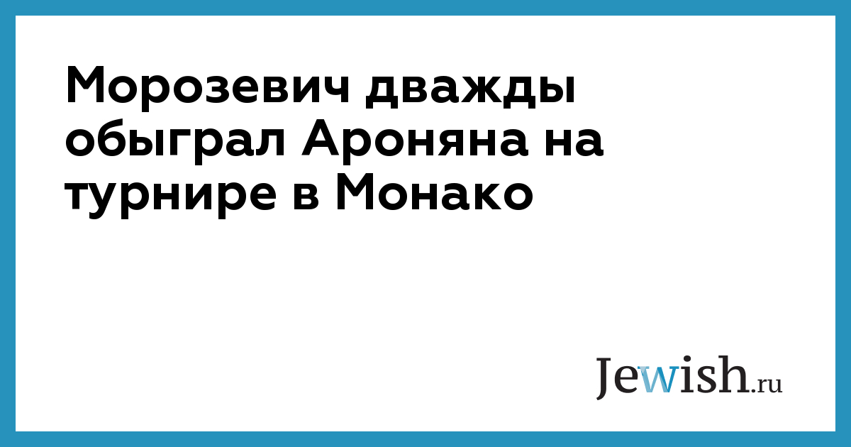 Морозевич дважды обыграл Ароняна на турнире в Монако