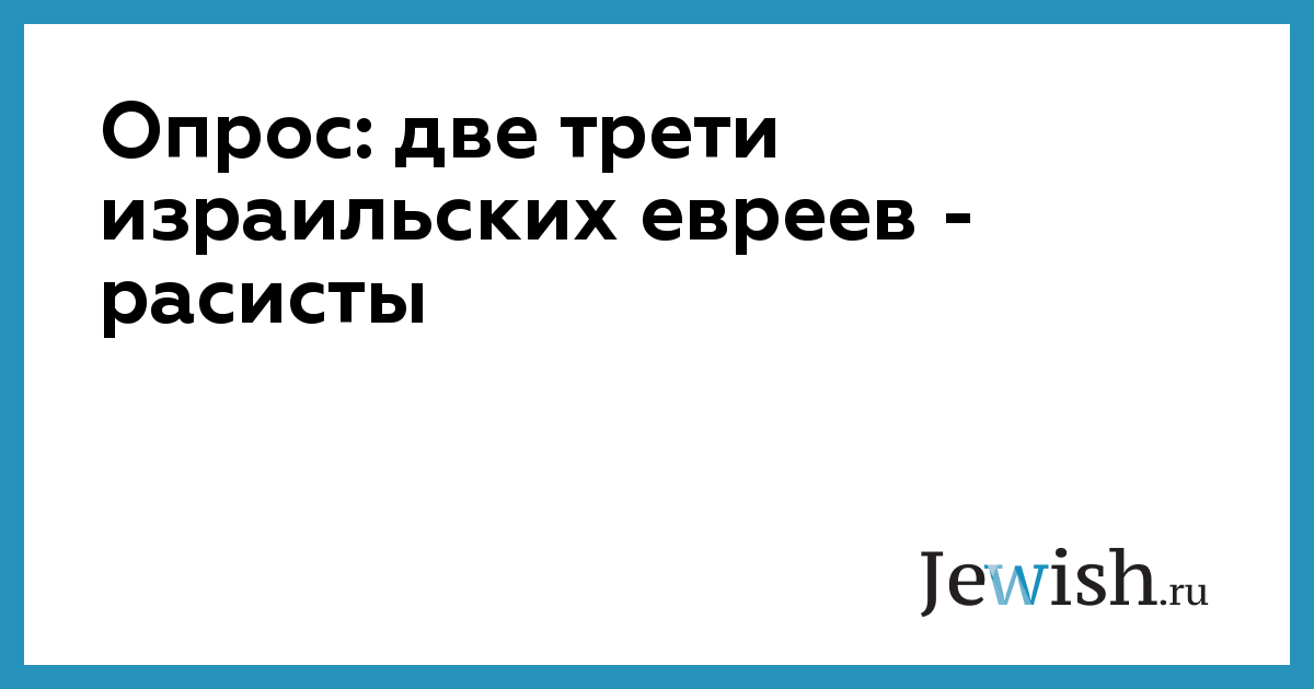 Опрос, посвященный отношению израильских евреев к арабским согражданам, вскрыл факт широкого распространения расистских взглядов: многие выступают за сегрегацию и политику, поощряющую арабов покидать страну, пишет Guardian (перевод на сайте Inopressa).