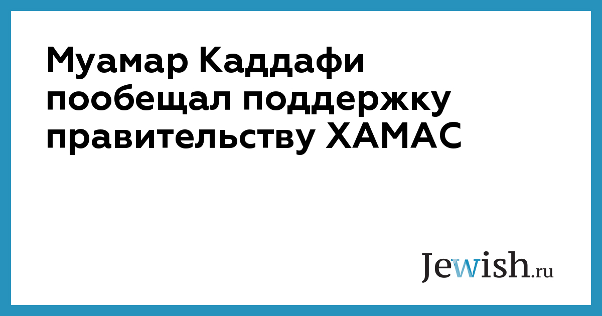 Муамар Каддафи пообещал поддержку правительству ХАМАС