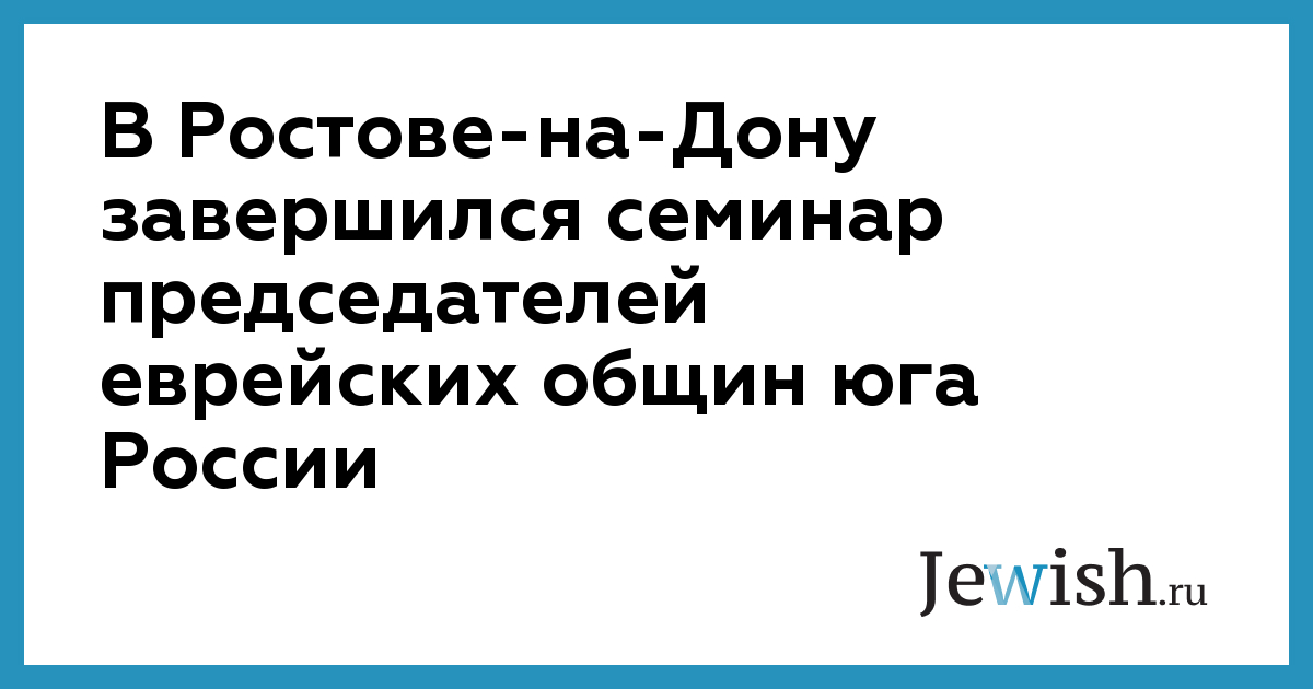 В Ростове-на-Дону завершил работу семинар председателей еврейских общин юга России. Участие в работе семинара приняли около 20 представителей общин малых городов Южного федерального округа — Владикавказа, Моздока, Буйнакска, Новороссийска, Кисловодска, Светлого Яра, Волжского и других, работающих под патронажем ростовского координационного центра еврейских общин ФЕОР.