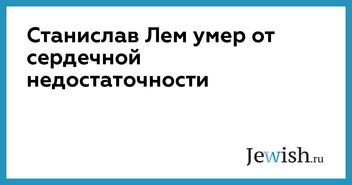 По словам Войчека Земека — пресс-секретаря всемирно-известного фантаста Станислава Лема (скончавшегося сегодня в Кракове в возрасте 84 лет), причиной смерти писателя стала сердечная недостаточность, "вызванная его преклонным возрастом", сообщает Associated Press.