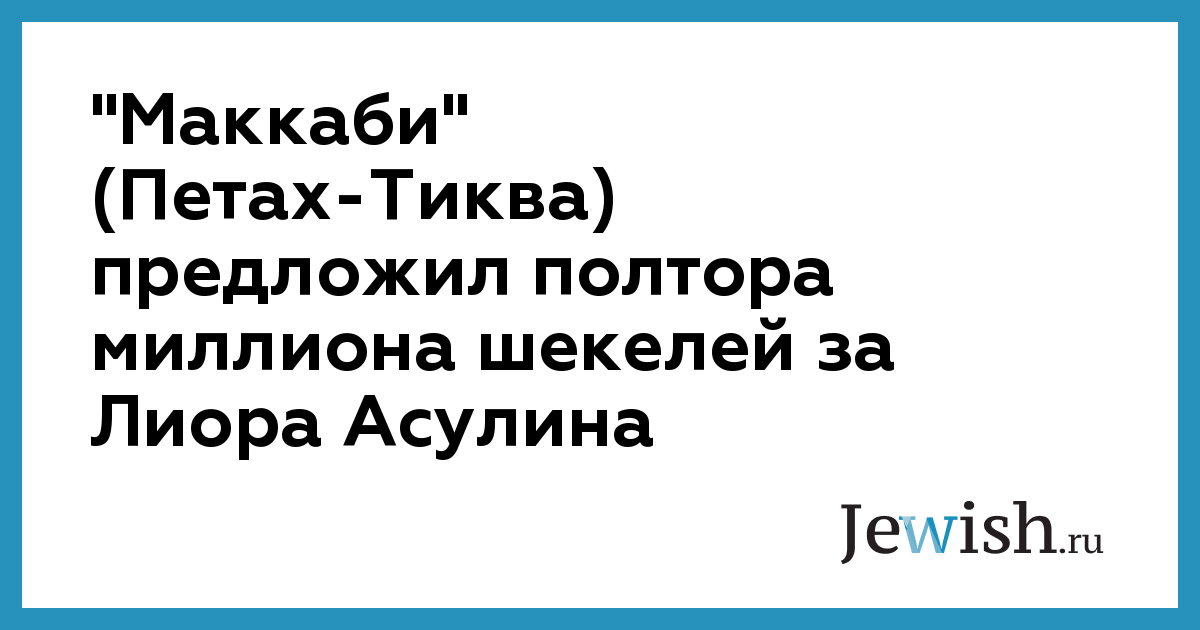 "Маккаби" (Петах-Тиква) предложил полтора миллиона шекелей за Лиора Асулина