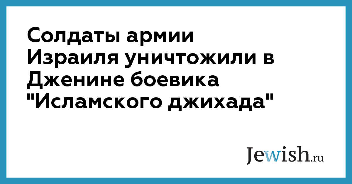 Солдаты армии Израиля уничтожили в Дженине боевика "Исламского джихада"