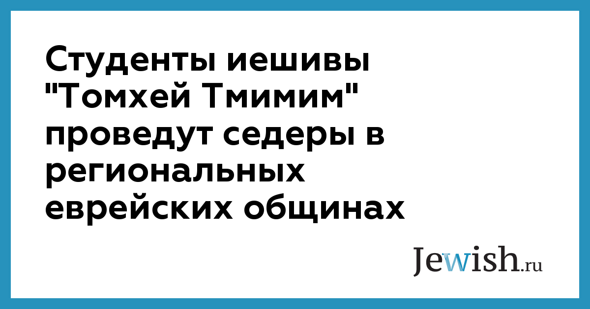 Студенты иешивы "Томхей Тмимим" проведут седеры в региональных еврейских общинах