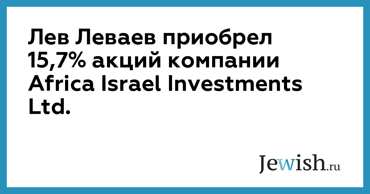 Израильский бизнесмен Лев Леваев приобрел у Bank Leumi le-Israel B.M.15,7% акций компании Africa Israel Investments Ltd. Как говорится в сообщении банка, сумма сделки составила $240 млн.
