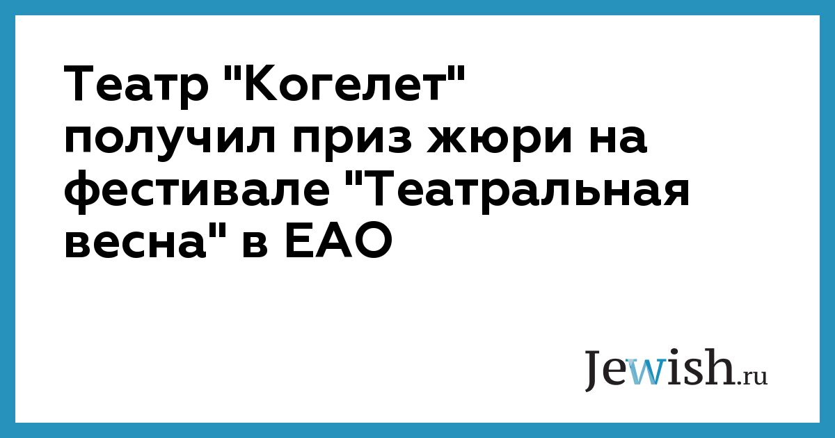 Театр "Когелет" получил приз жюри на фестивале "Театральная весна" в ЕАО