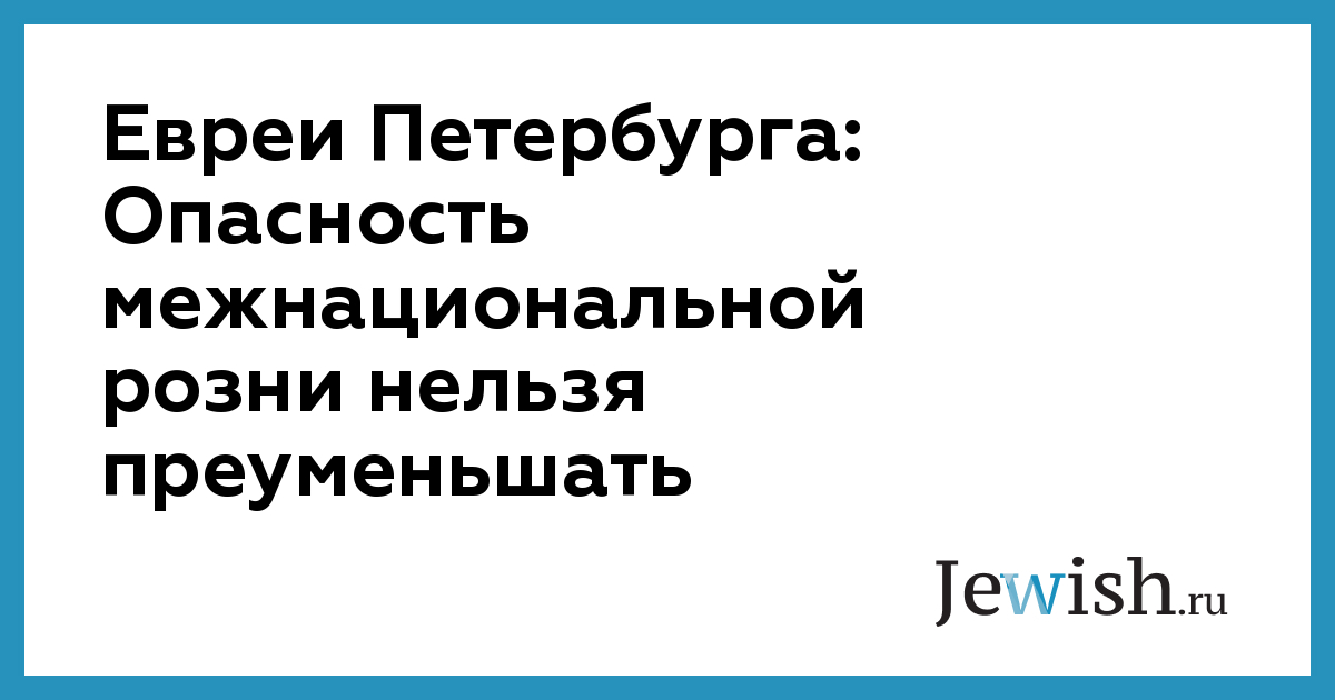Евреи Петербурга: Опасность межнациональной розни нельзя преуменьшать