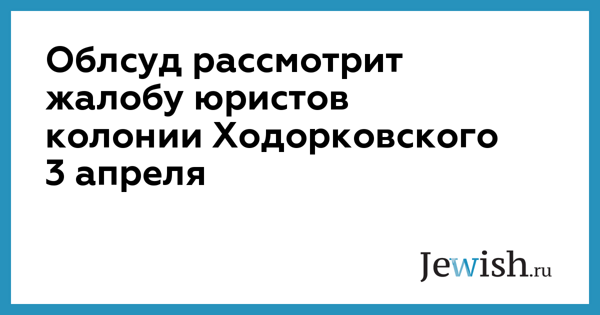 Облсуд рассмотрит жалобу юристов колонии Ходорковского 3 апреля