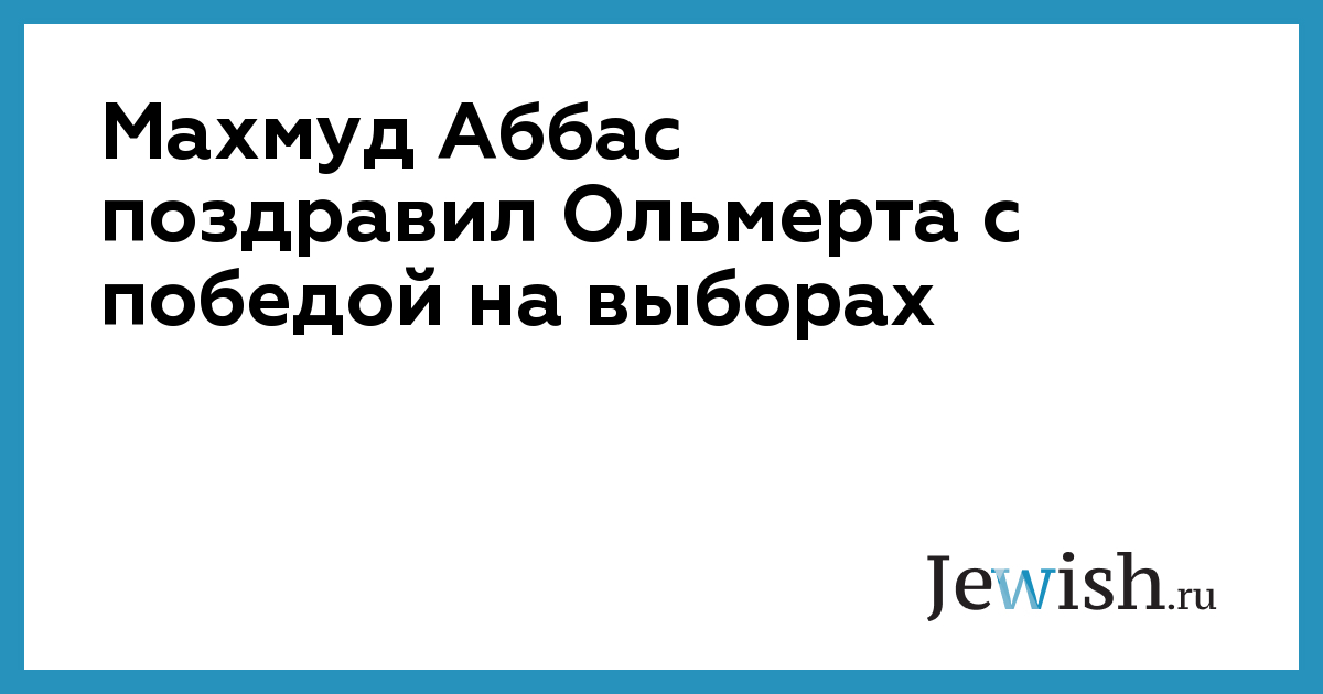 Глава Палестинской администрации Махмуд Аббас поздравил в четверг по телефону и.о. премьер-министра Израиля Эхуда Ольмерта с победой на прошедших 28 марта парламентских выборах. Об этом сообщила канцелярия израильского премьера.