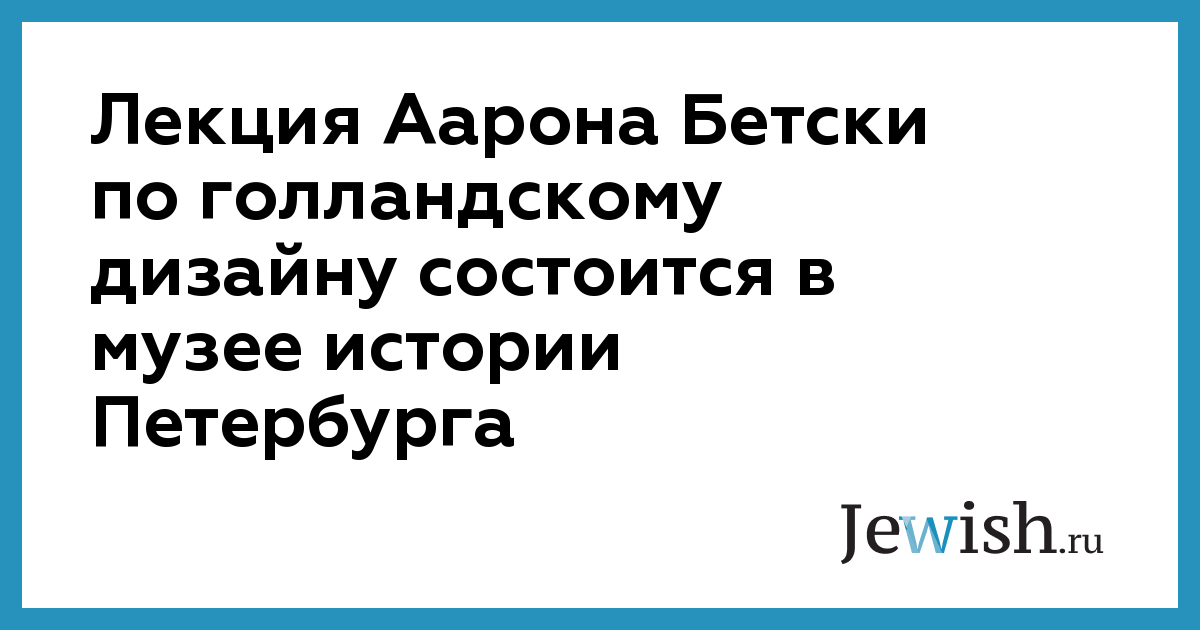Лекция Аарона Бетски по голландскому дизайну состоится в музее истории Петербурга