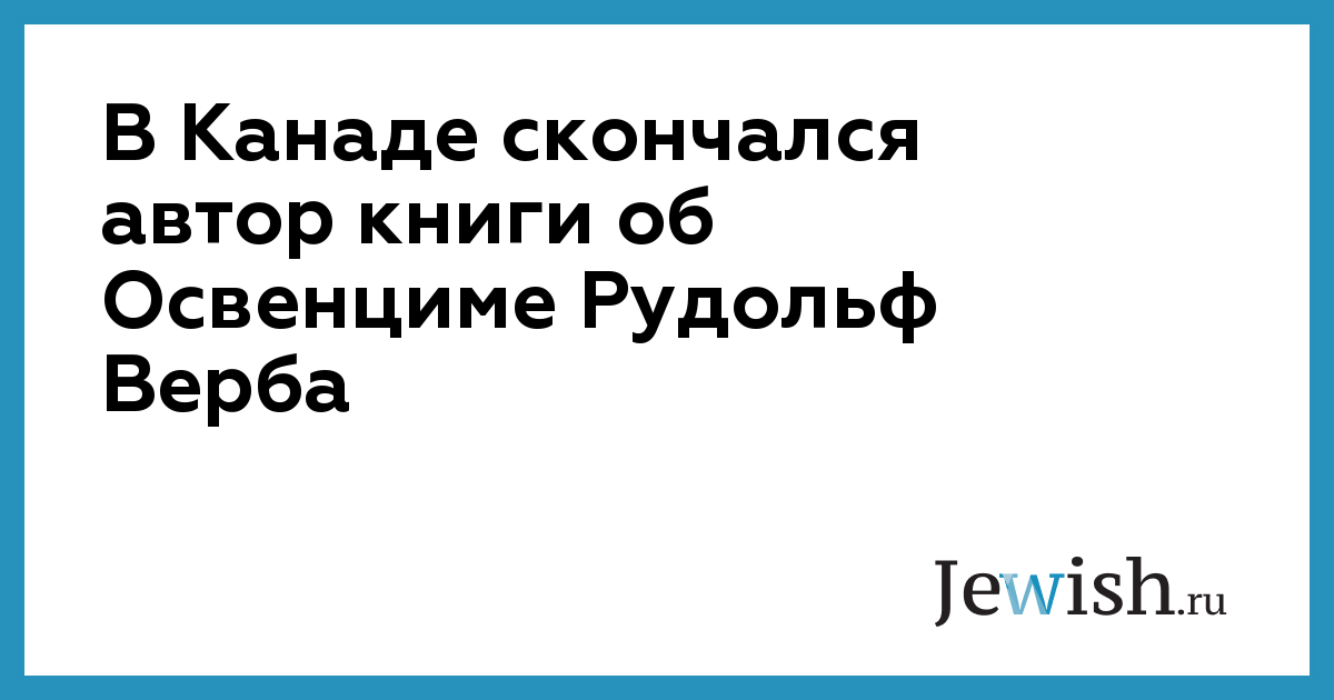 В Канаде на 83-м году жизни скончался Рудольф Верба (Вальтер Розенберг), вошедший в историю как первый человек, сообщивший о массовом истреблении заключенных в лагере уничтожения Аушвиц, сообщает "Курсор".