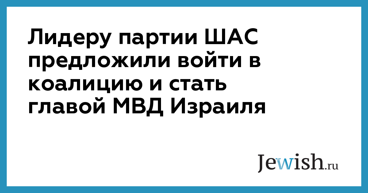 Лидеру партии ШАС предложили войти в коалицию и стать главой МВД Израиля