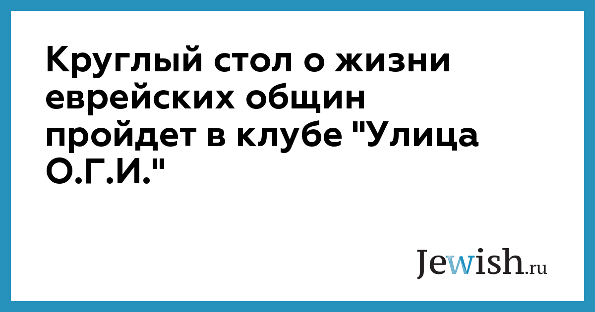 Круглый стол о жизни еврейских общин пройдет в клубе "Улица О.Г.И."