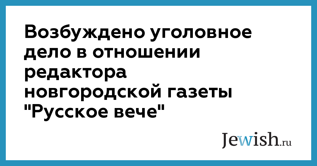 Возбуждено уголовное дело в отношении редактора новгородской газеты "Русское вече"