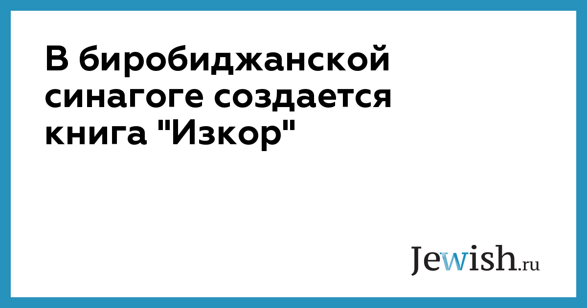 Увековечить память о своих родственниках еврейской национальности в специальной книге может теперь любой житель Еврейской автономной области. Фамилии и имена ушедших из жизни, и их фотографии вместе с текстом поминальной молитвы будут занесены в книгу "Изкор". Как сообщили 4 марта корреспонденту ИА REGNUM в биробиджанской синагоге, Изкор — это специальная молитва для поминания умерших. Она читается в синагогах четыре раза в год — по окончании праздников Йом-Кипур, Суккот, Песах и Шавуот.