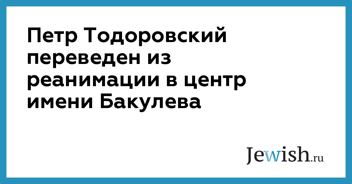 Петр Тодоровский переведен из реанимации в центр имени Бакулева