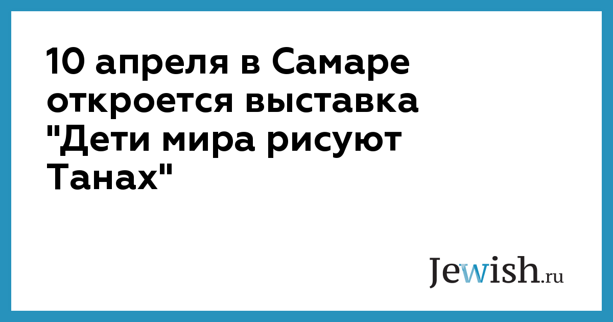 10 апреля в самарском Центре социализации молодежи откроется выставка «Дети мира рисуют ТАНАХ». Как сообщает "Самара сегодня", выставка будет открыта до 17 апреля 2006 года.
