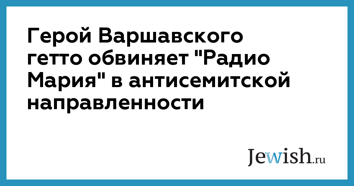 Один из лидеров восстания в Варшавском гетто в годы Второй мировой войны призвал правящую партию Польши запретить религиозный передачи "Радио Мария" по причине их антисемитской направленности. Видный деятель еврейской общины Польши Марек Эйдельман обвиняет популярную радиостанцию в ксенофобии, шовинизме и антисемитизме.