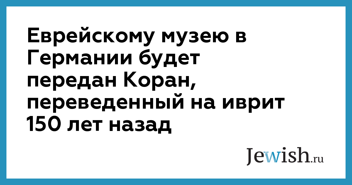 Еврейскому музею в Германии будет передан Коран, переведенный на иврит 150 лет назад