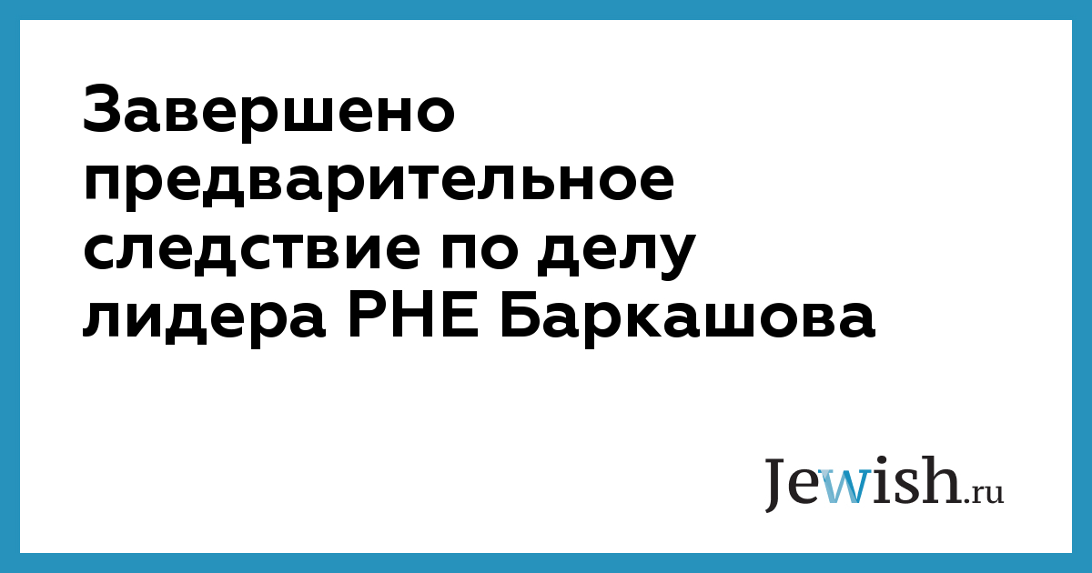 Прокуратура Московской области в четверг завершила предварительное следствие по уголовному делу в отношении лидера "Русского национального единства" (РНЕ) Александра Баркашова, сообщил его адвокат Юрий Качан. "Сегодня мы подписали протокол о завершении предварительного следствия по делу и теперь начнем знакомиться с его материалами", — сказал адвокат.