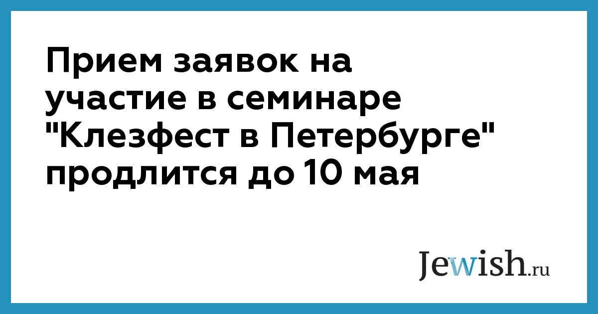 Прием заявок на участие в семинаре "Клезфест в Петербурге" продлится до 10 мая