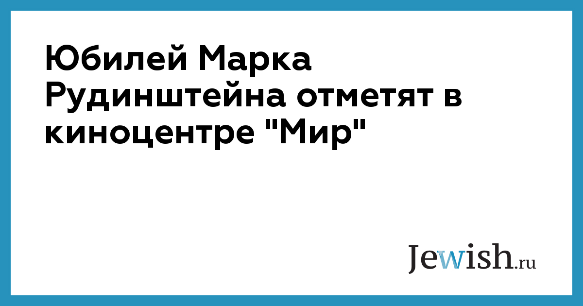 Юбилей Марка Рудинштейна отметят в киноцентре "Мир"