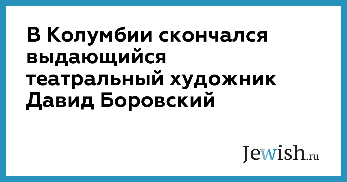 В Боготе на 72-м году жизни от инфаркта скончался театральный художник Давид Львович Боровский. В столице Колумбии проходила его персональная выставка в рамках Ибероамериканского театрального фестиваля, и он приехал на ее открытие. О кончине Давида Боровского стало известно из сообщения радио "Свобода".
