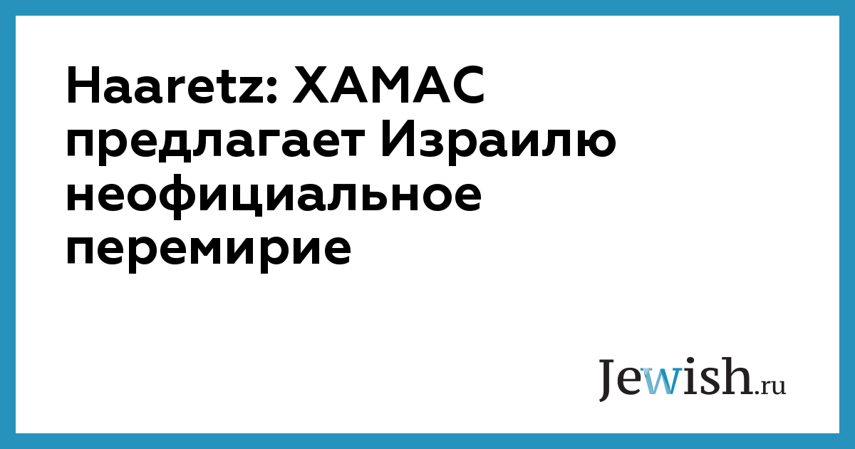 Радикальное палестинское движение ХАМАС, сформировавшее правительство Палестинской национальной автономии (ПНА), предложило Израилю заключить неофициальное перемирие, пишет израильская газета Haaretz.