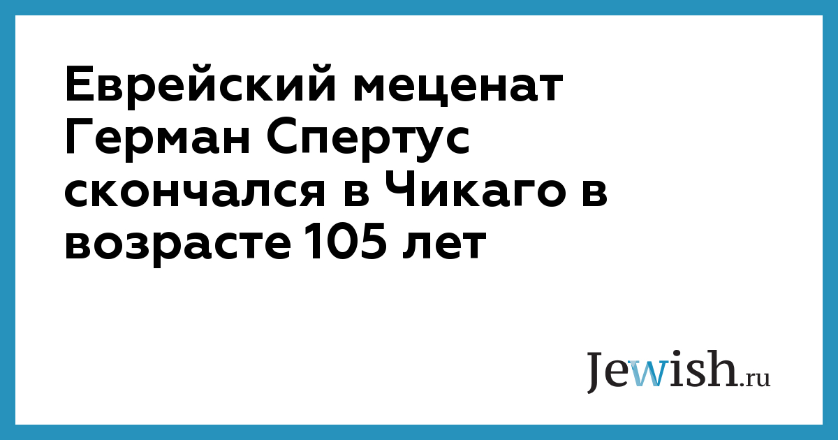 Еврейский меценат Герман Спертус скончался в Чикаго в возрасте 105 лет