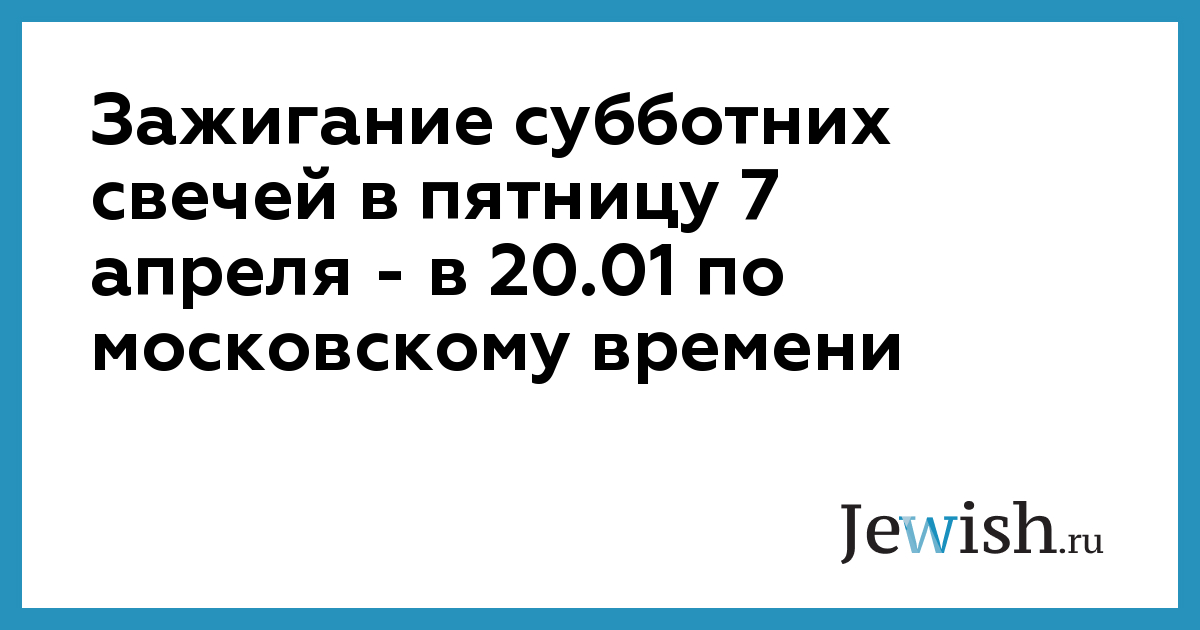 Зажигание субботних свечей в пятницу 7 апреля — в 20.01 по московскому времени