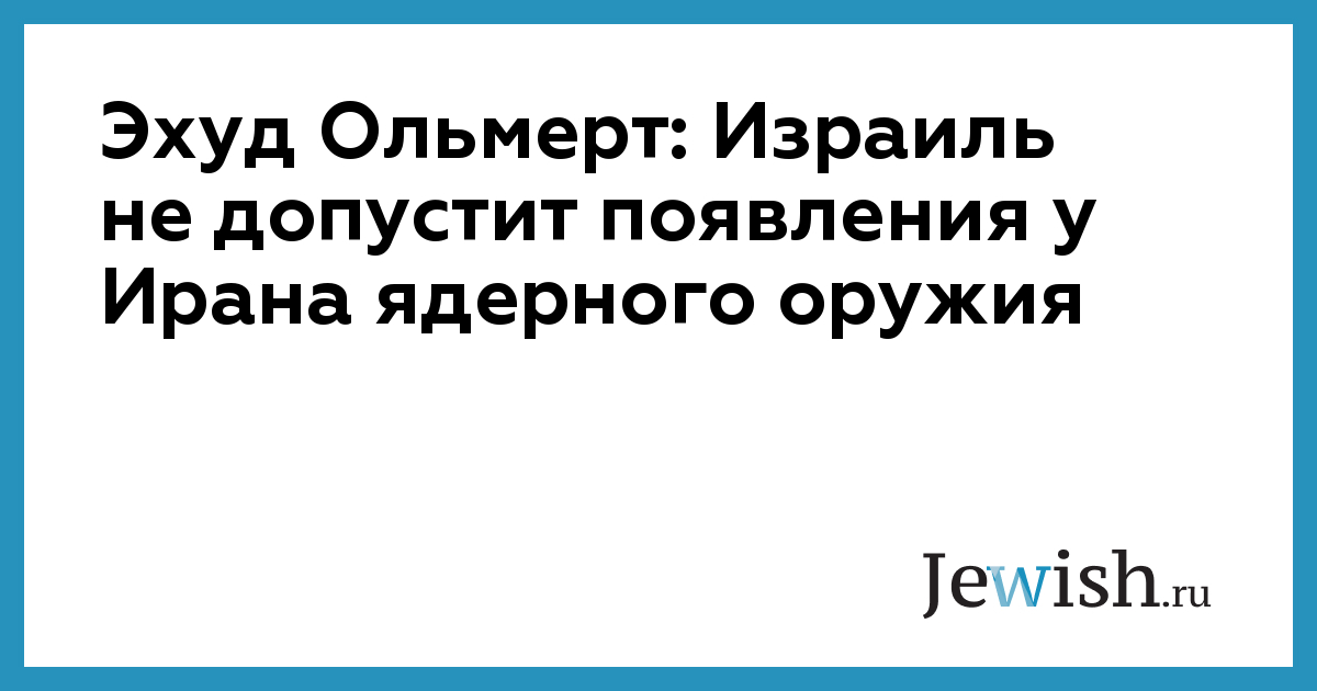 Израиль не допустит появления у Ирана ядерного оружия. Об этом заявил исполняющий обязанности премьер-министра Израиля Эхуд Ольмерт в интервью газете "Вашингтон пост".