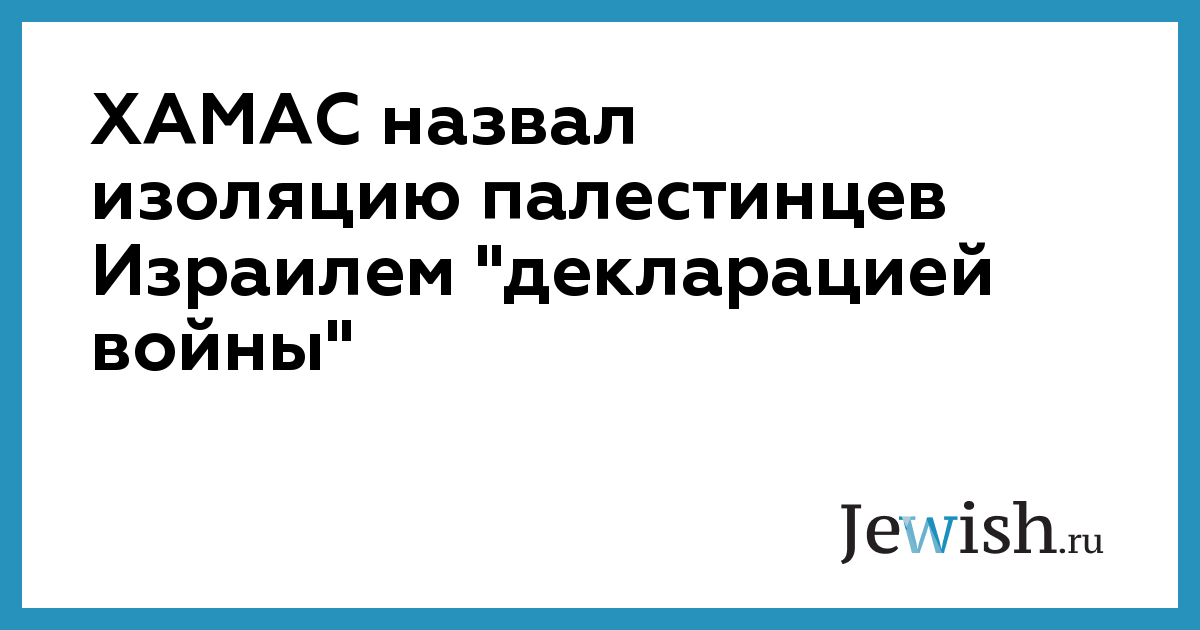 ХАМАС назвал изоляцию палестинцев Израилем "декларацией войны"