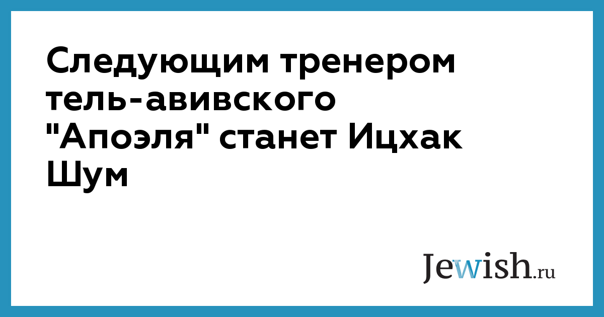 Следующим тренером тель-авивского "Апоэля" станет известный израильский специалист Ицхак Шум. Об этом сообщает израильский спортивный сайт ONE со ссылкой на источник в футбольном клубе "Апоэль" (Тель-Авив).