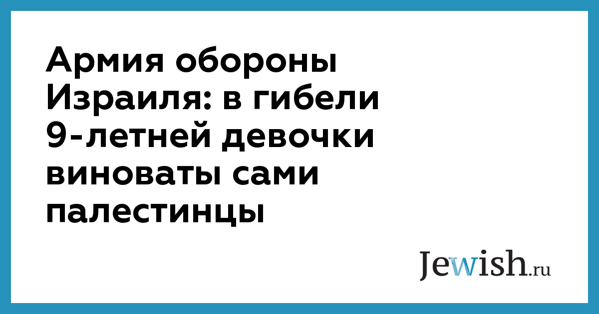 Армия обороны Израиля: в гибели 9-летней девочки виноваты сами палестинцы