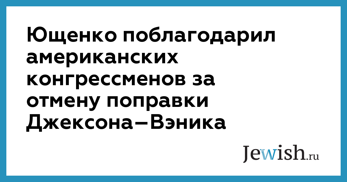 Президент Украины Виктор Ющенко направил письма-благодарности трем парламентариям США, которые приложили усилия для отмены поправки Джексона-Веника в отношении Украины. Об этом «proUA» сообщили в пресс-службе Президента.