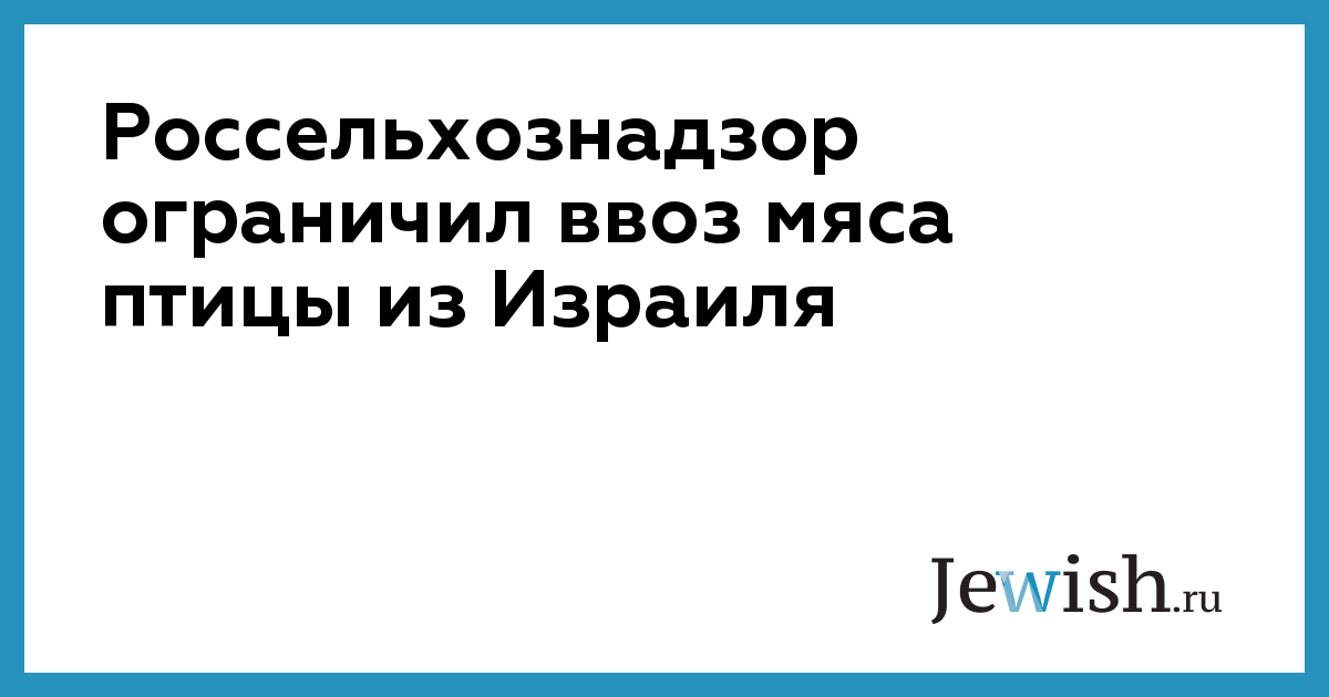 Федеральная служба по ветеринарному и фитосанитарному контролю (Россельхознадзор) с 5 апреля ввела временные ограничения на ввоз мяса птицы из Израиля.