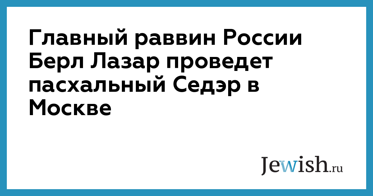 Главный раввин России Берл Лазар проведет пасхальный Седэр в Москве