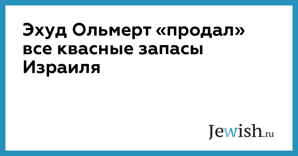 Эхуд Ольмерт «продал» все квасные запасы Израиля