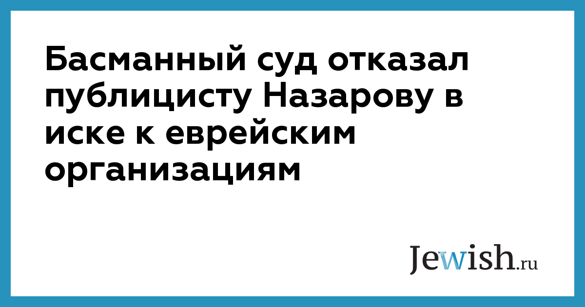 Басманный суд отказал публицисту Назарову в иске к еврейским организациям