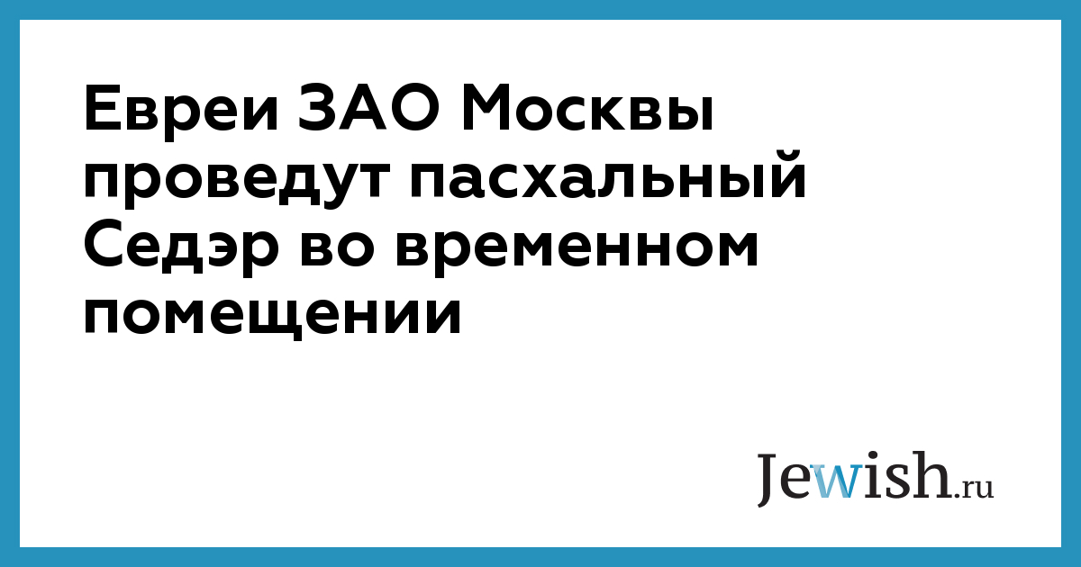 Евреи ЗАО Москвы проведут пасхальный Седэр во временном помещении